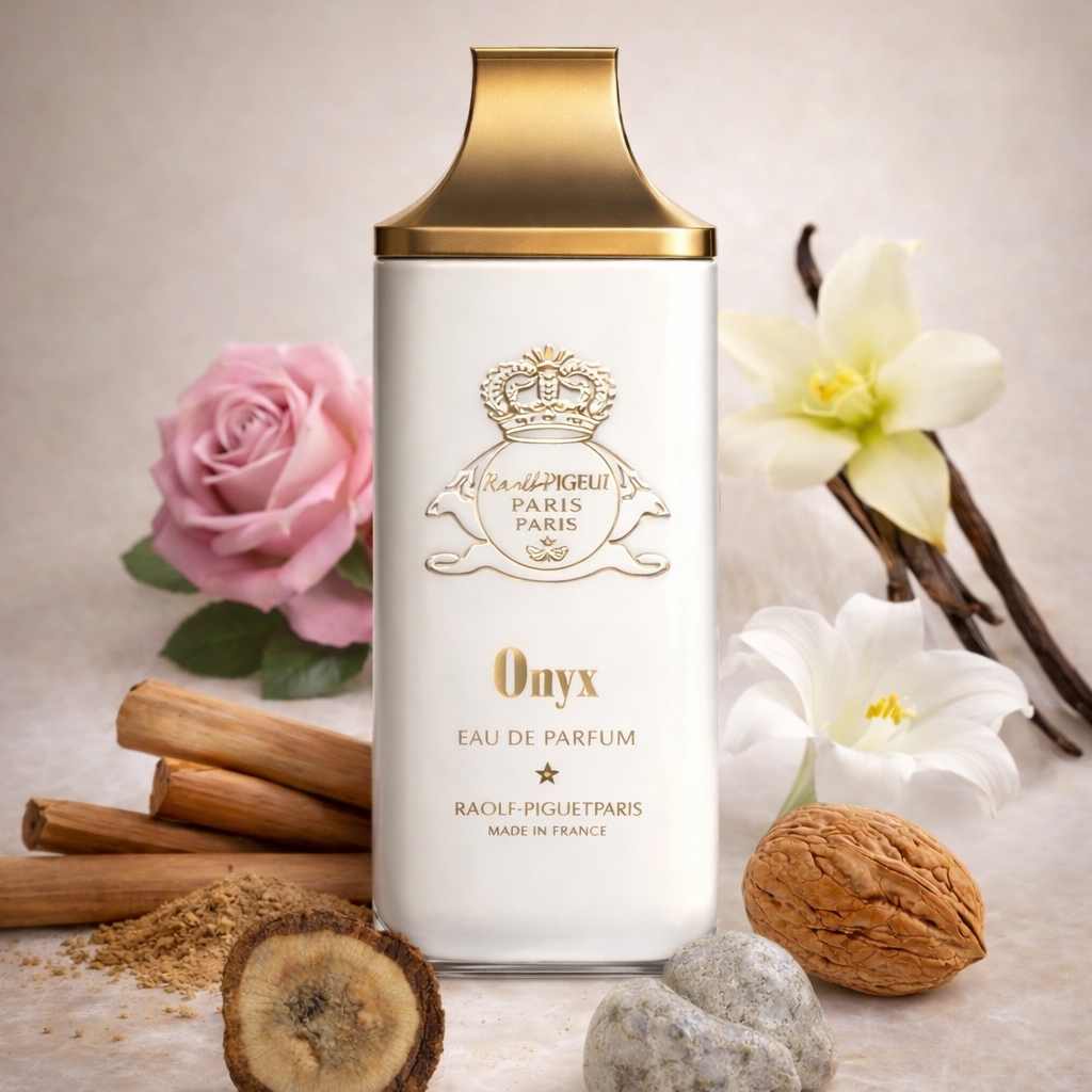 Onyx es la encarnación de la belleza y el espíritu en cada nota. Se abre con la calidez del ámbar, envolviéndote suavemente como la luz del sol que atraviesa una neblina soñadora, aportando una profunda sensación de tranquilidad. El aroma intenso del sándalo añade una profundidad única, como si caminaras por un bosque encantado que guarda los secretos de la naturaleza.